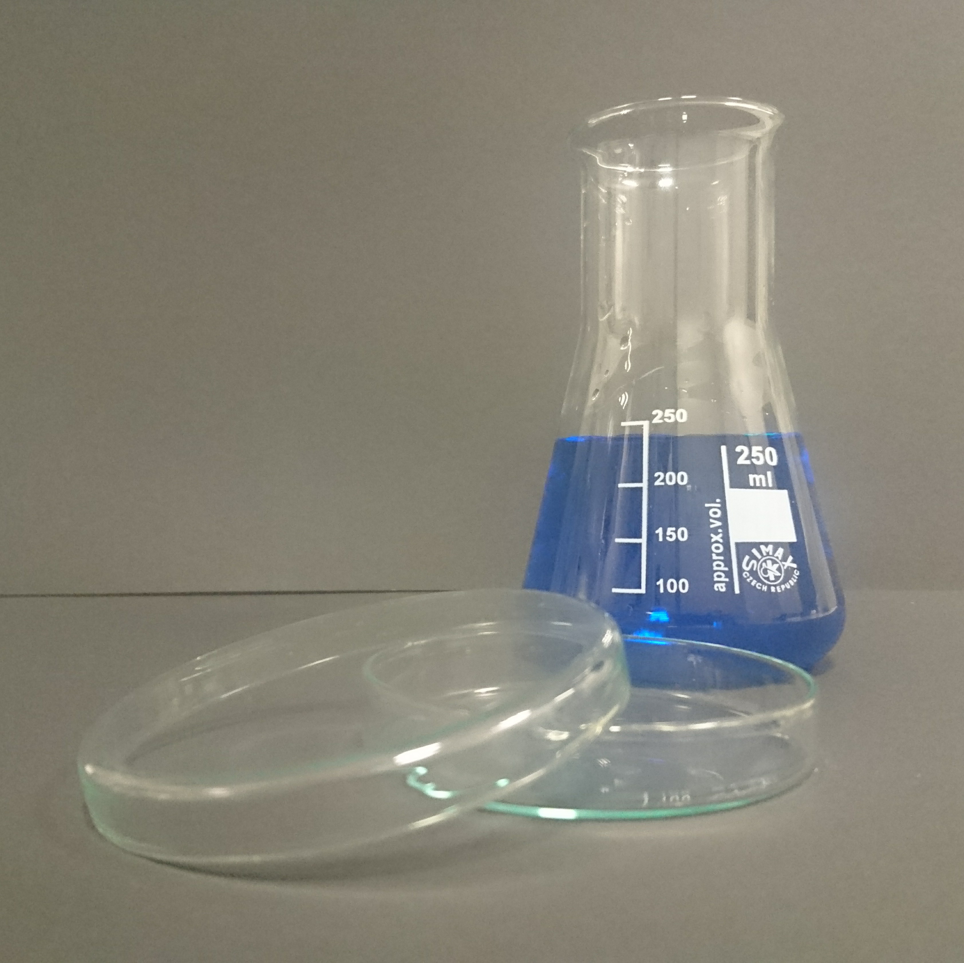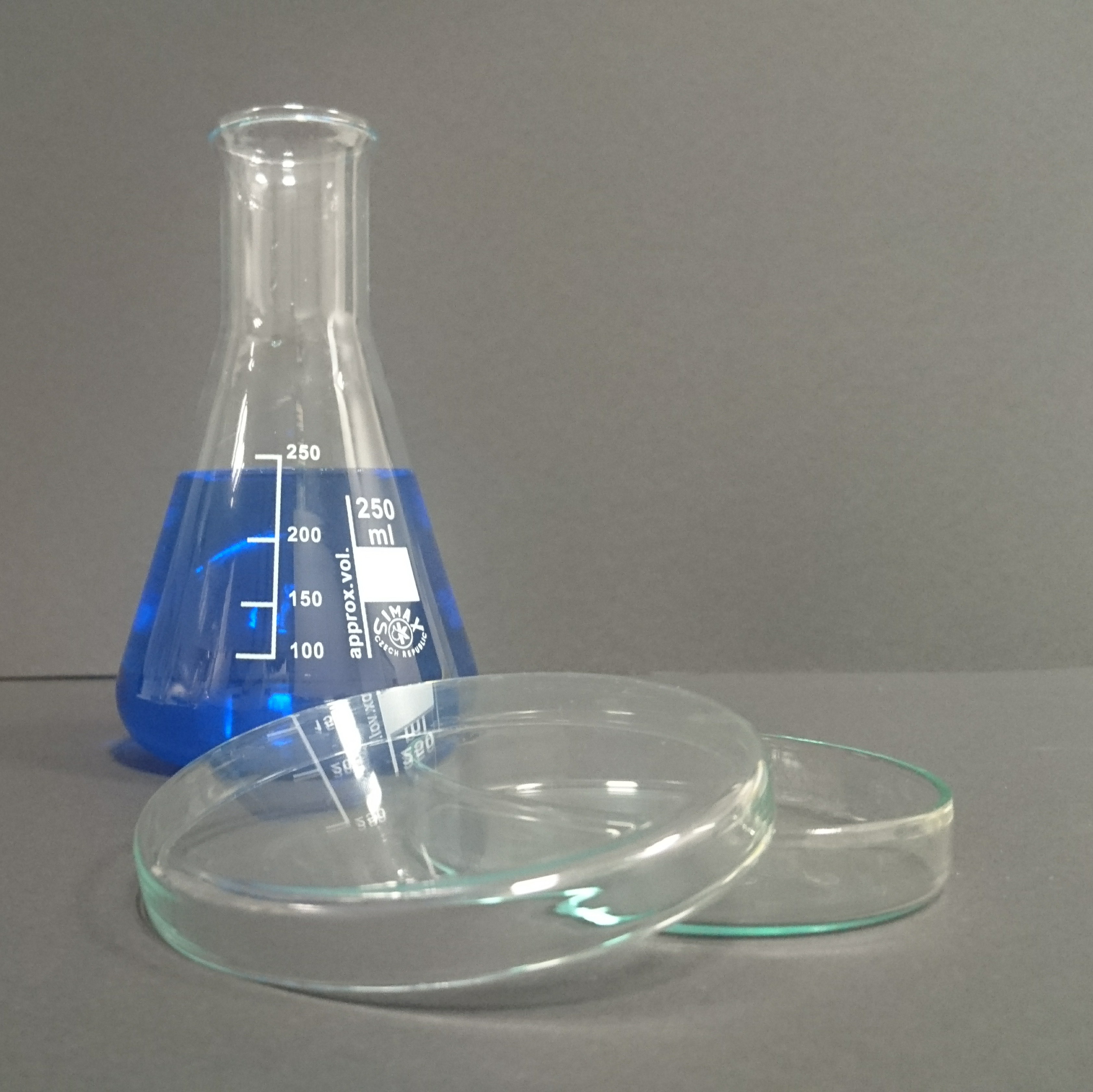013.04.01 | Pexeso_01.jpg | Erlenmayerova baňka s úzkým hrdlem + Petriho miska |