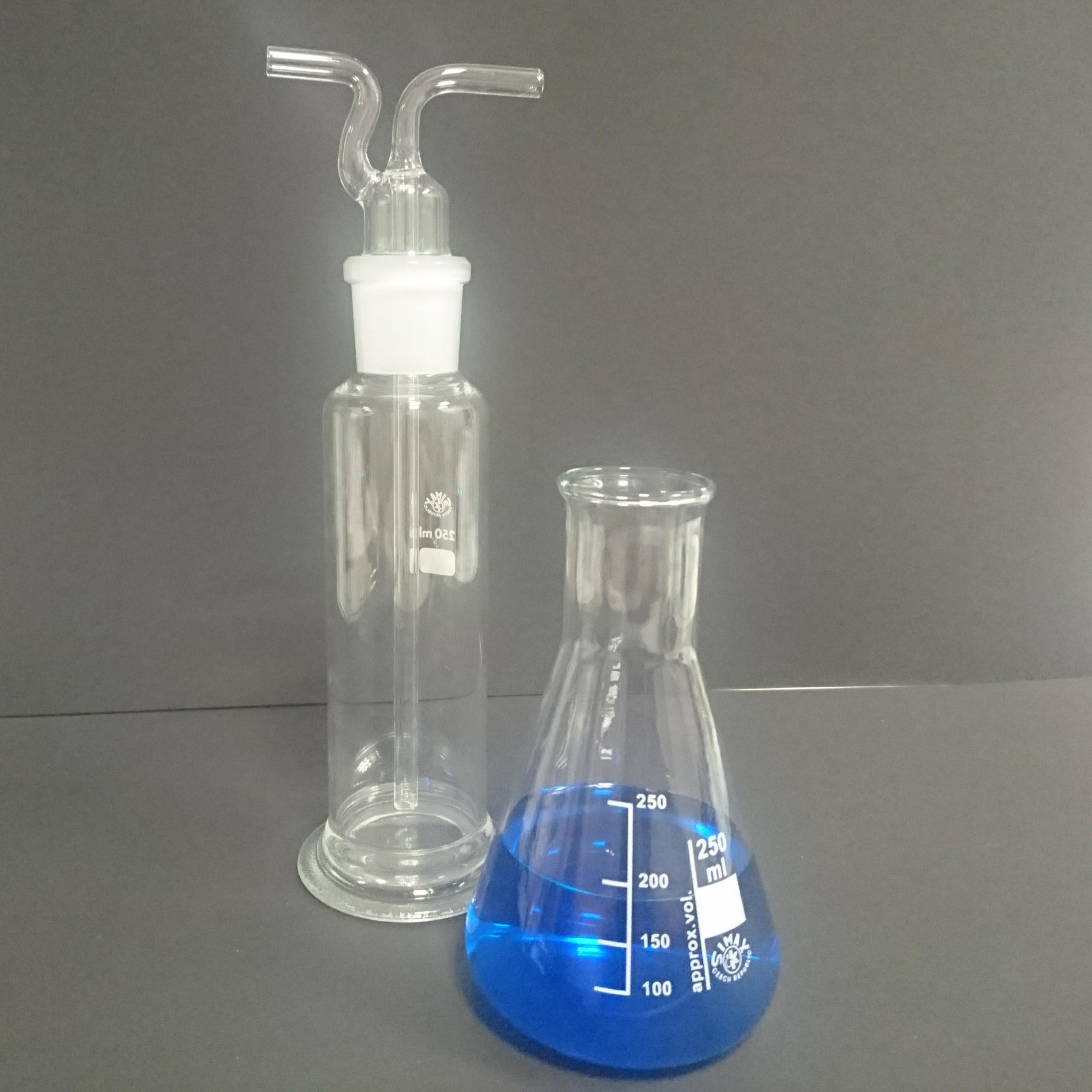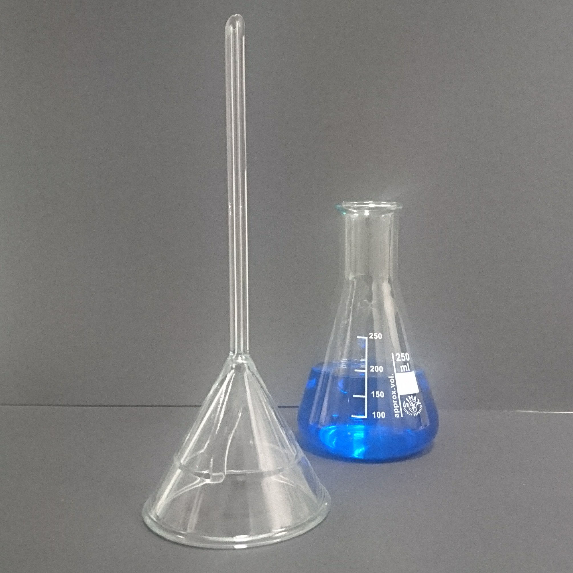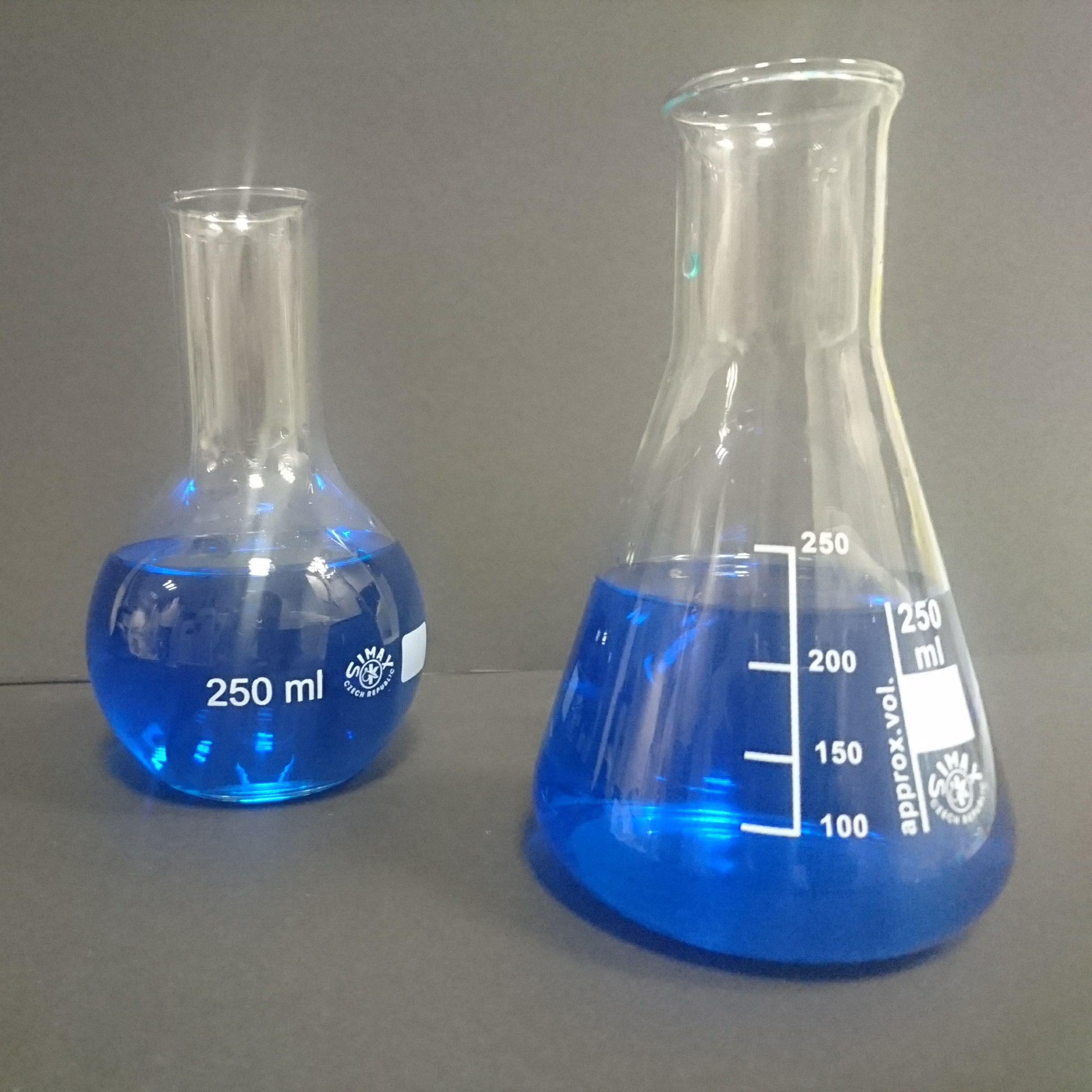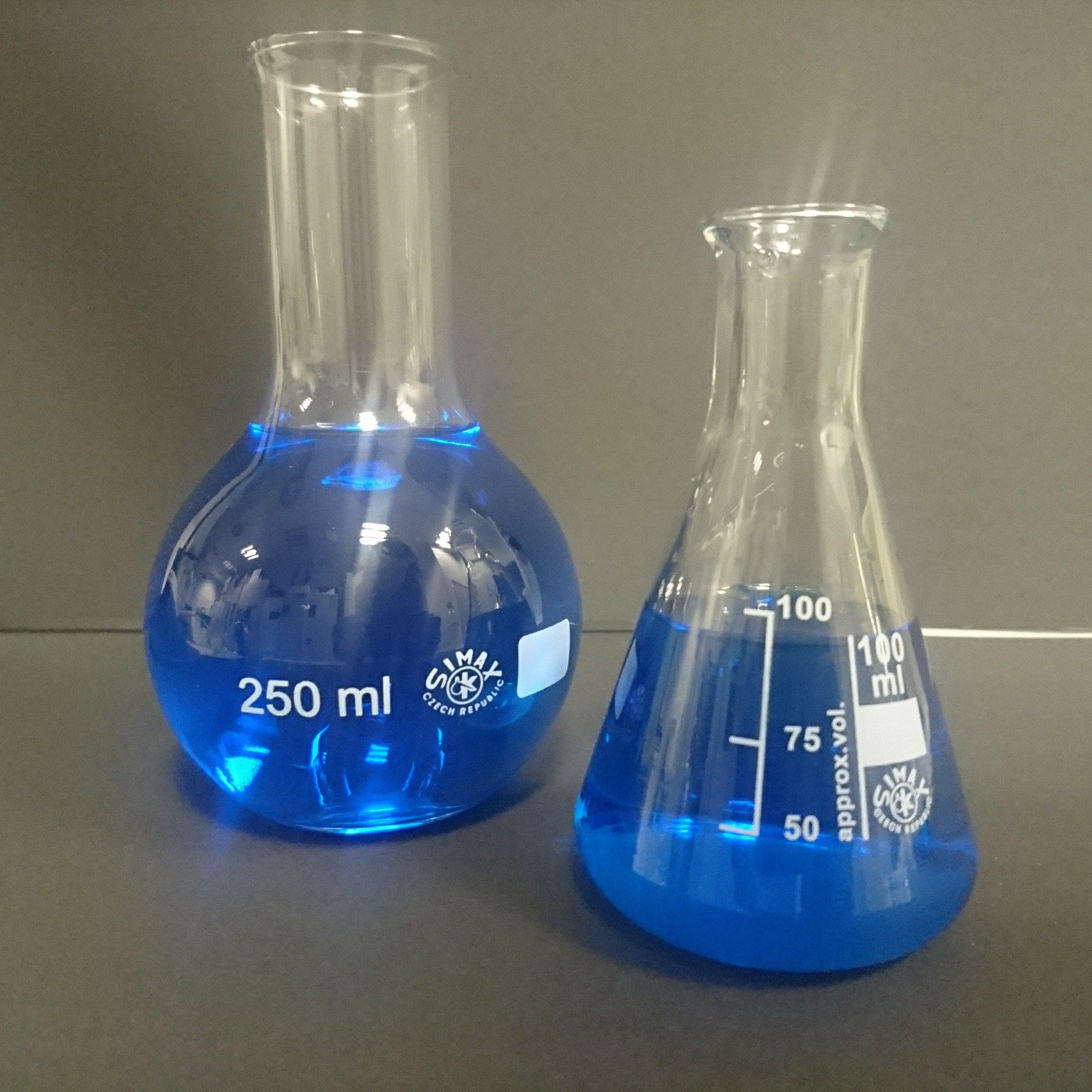 013.04.12 | Pexeso_12.jpg | Kulatá baňka s plochým dnem + Erlenmayerova baňka úzkohrdlá 250 |