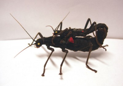 Páření: sameček se vozí se na zádech samičky, a to i v okamžicích, kdy nedochází k páření, samička snáší 2 - 3 milimetrová vajíčka